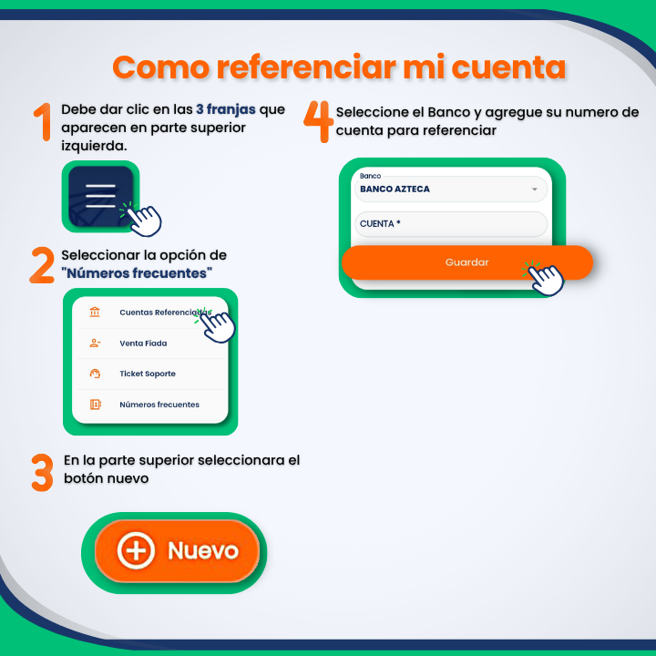 IMPORTANTE: Para poder referenciar tu cuenta, es requisito indispensable contar con al menos un depósito registrado manualmente que ya esté en estatus liberado en el sistema.
